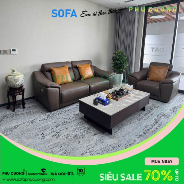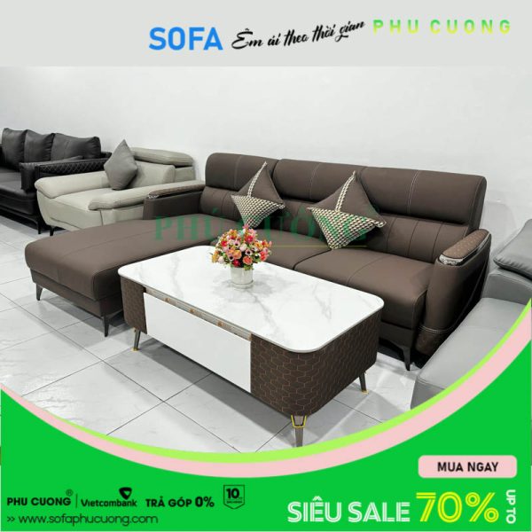 Trọn bộ sofa góc bàn đá da chống xước A966