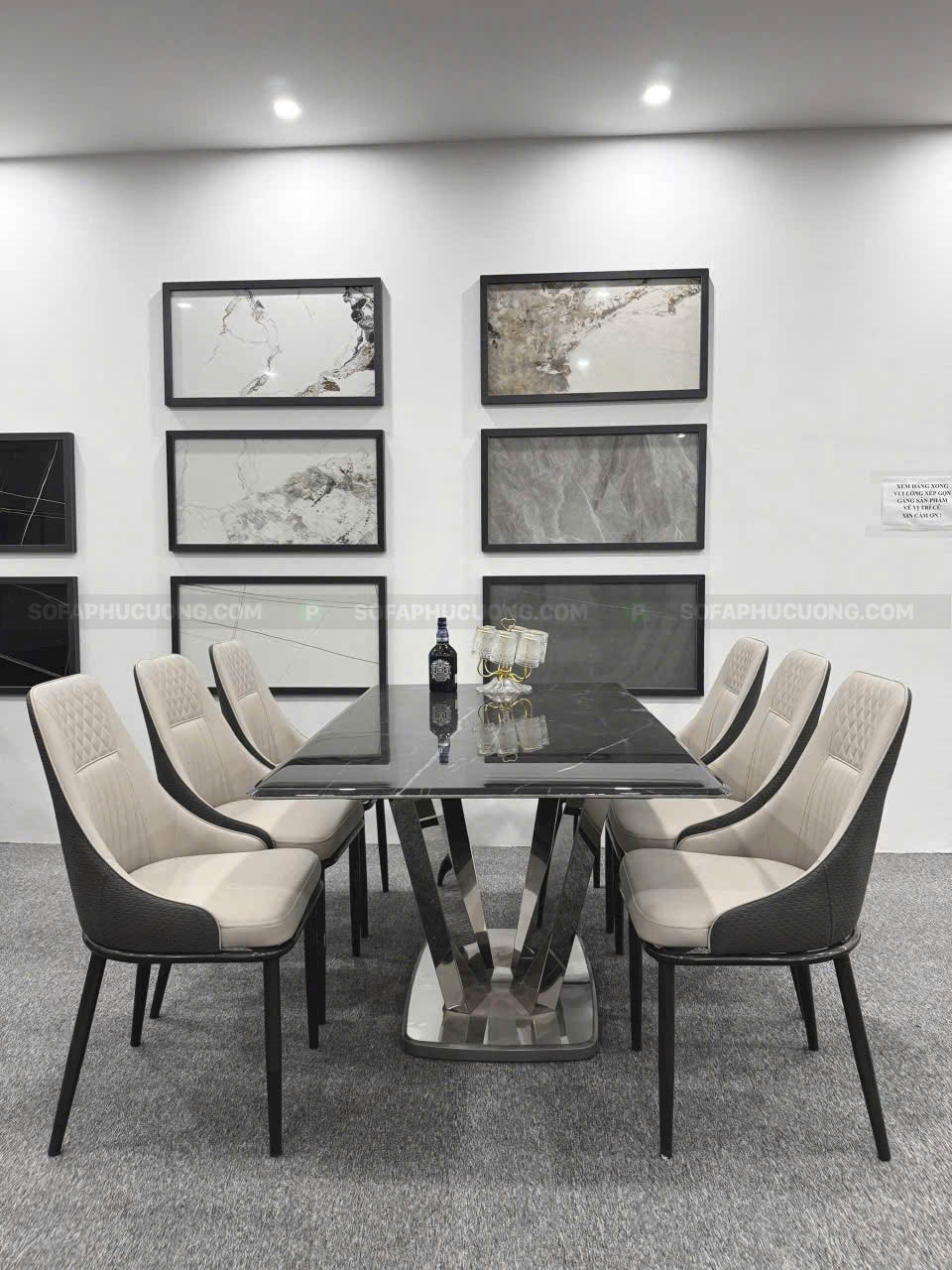 [BA058] Bộ bàn ăn chân inox V mặt vi tinh thể 1m6