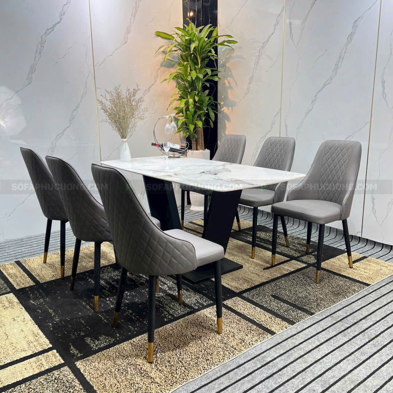 [BA060] Bộ bàn ăn 6 ghế đá vi tinh thể 1m6