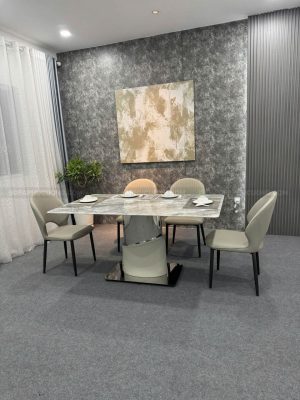 [BA071] Bộ bàn ăn chân inox 1m6 6 ghế da