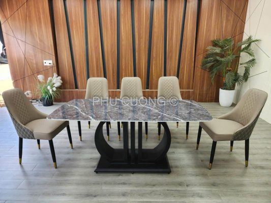 Bàn ăn 6 ghế ô quả trám mặt đá vi tinh BK030