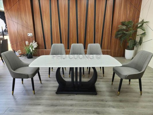 Bàn ăn chân đàn cách điệu 6 ghế BK027