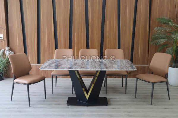 Bàn ăn chữ V 6 ghế Nâu đẹp BK014