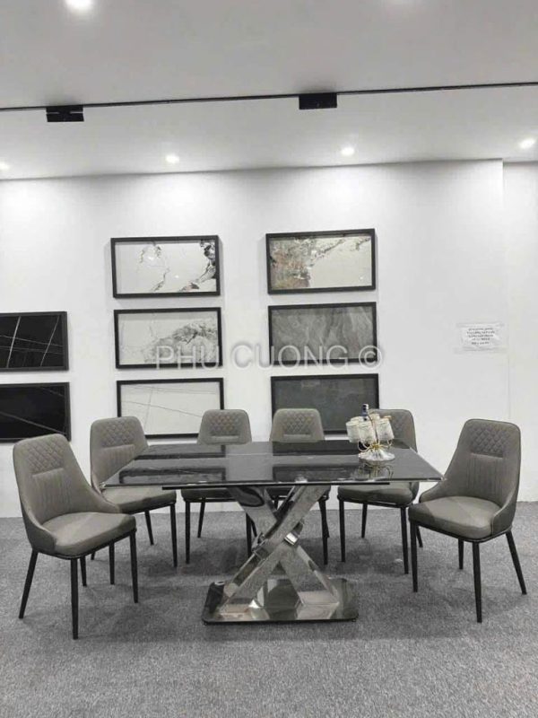 Bàn ăn đá Vi Tinh 1m6 với 6 ghế BA018