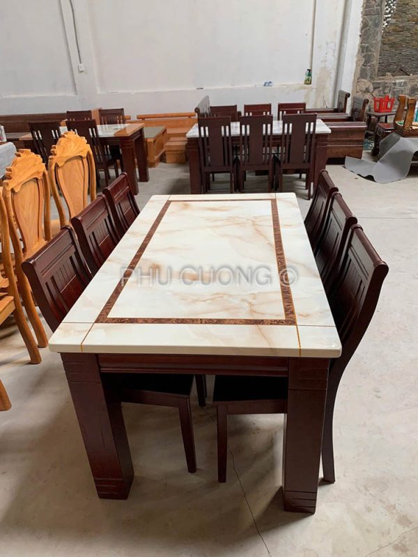 Bàn ăn gỗ Nâu đậm mặt đá dày chân to LTS012