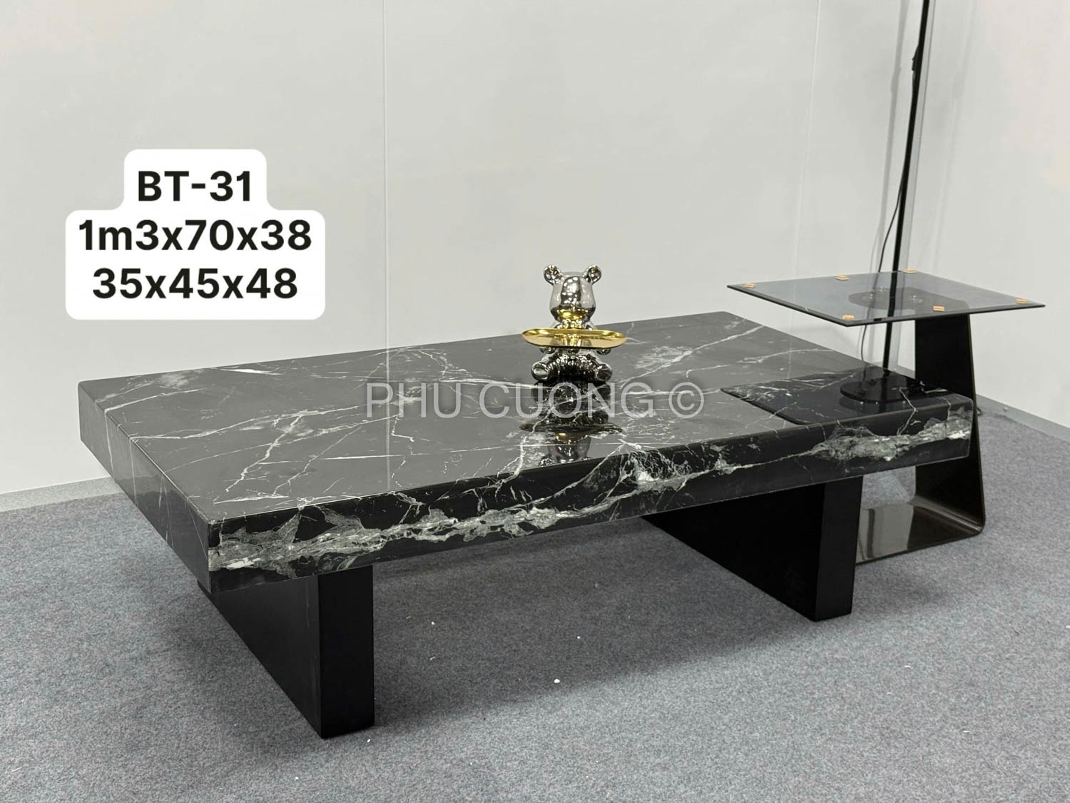 Bàn trà đá đen xám phối bàn đi kèm BT-31