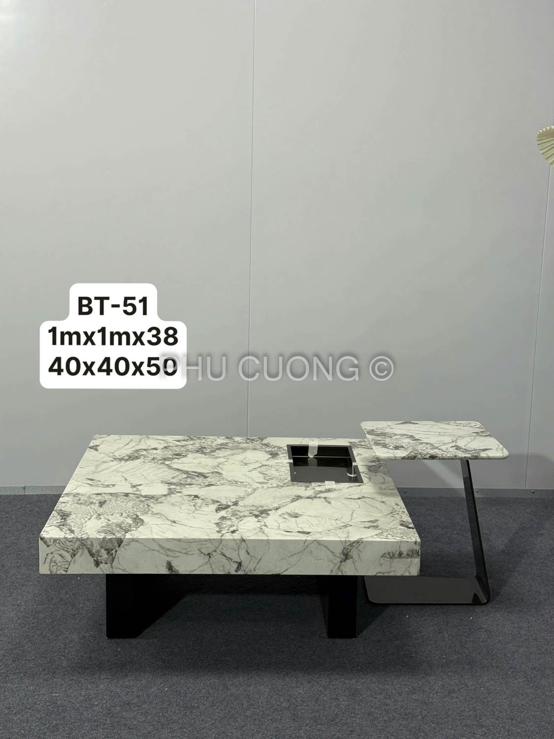 Bàn trà sofa 2 mặt đá xám trắng BT-51