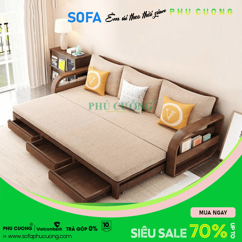 ► Tính năng nổi bật : Thiết kế thông minh có hộc để sách vừa làm ghế, vừa kéo ra thành giường nằm ngủ được 2-3 người lớn và 1 em bé, mặt nệm phẳng . Chất liệu không bám bụi, có dây kéo tháo ra vệ sinh vỏ nệm được, nằm đọc sách ngủ qua đêm, full gỗ tự nhiên chắc chắn.