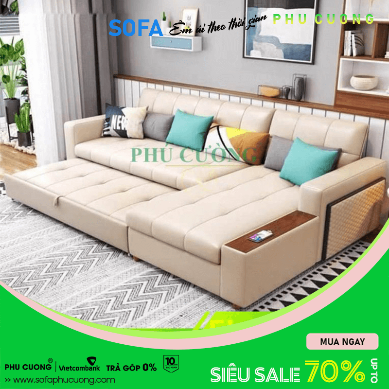► Tính năng nổi bật: Thiết kế thông minh có hộc để đồ, vừa làm ghế, vừa kéo ra thành giường nằm ngủ được 2 người lớn và 1 em bé. Chất liệu không bám bụi, vệ sinh lau chùi, nằm đọc sách ngủ qua đêm.