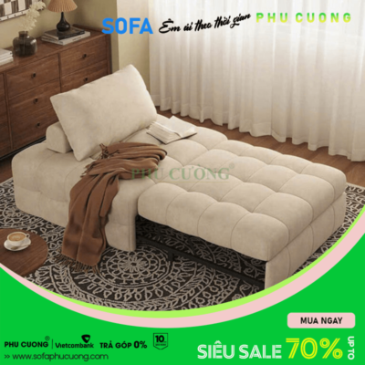 ► Tính năng nổi bật: Thiết kế thông minh bằng mặt nệm được vừa làm ghế, vừa kéo ra thành giường nằm ngủ được 1 người lớn thoải mái. Chất liệu không bám bụi, vệ sinh lau chùi, nằm đọc sách ngủ qua đêm.